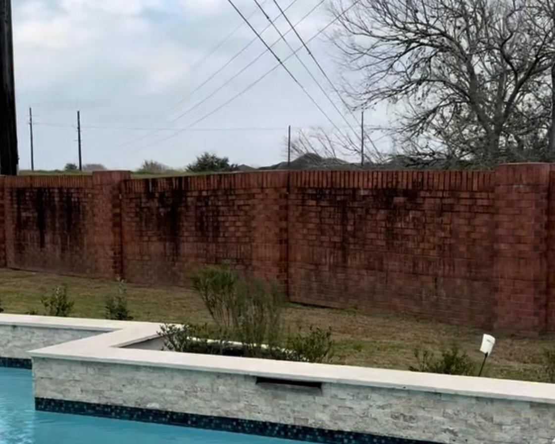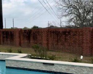 This Bellaire estate required professional Brick Cleaning Bellaire TX services after years of environmental contamination dulled the perimeter wall’s architectural beauty. The 150-foot brick wall featured decorative columns and contrasting white mortar joints. However, over time, atmospheric pollution created a dark film across the red brick, turning its rich color into a muddy brown tone.