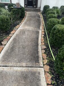 This Sugar Land home required professional Concrete Cleaning Sugar Land TX services after the front walkway developed noticeable surface darkening from organic buildup and daily foot traffic. Over time, moisture exposure and shade created a layer of grime that dulled the concrete’s natural color. As a result, the entry path began to look aged and uneven despite the well-maintained landscaping.
