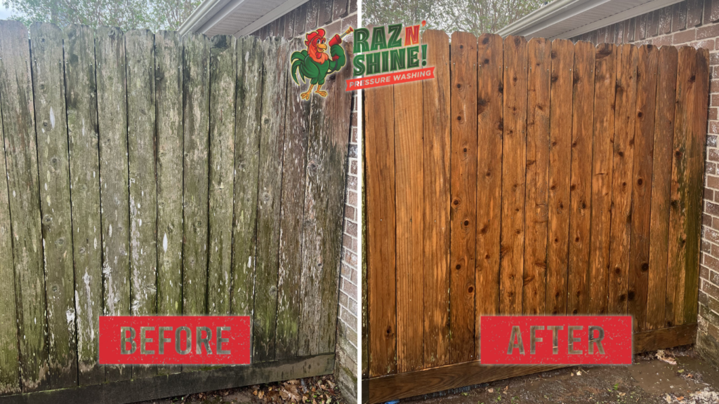 Is your wood fence weathered, gray, or covered in mold? Raz N’ Shine’s fence restoration saves thousands compared to replacement while delivering beautiful results. Call Raz N’ Shine today for your free fence assessment.